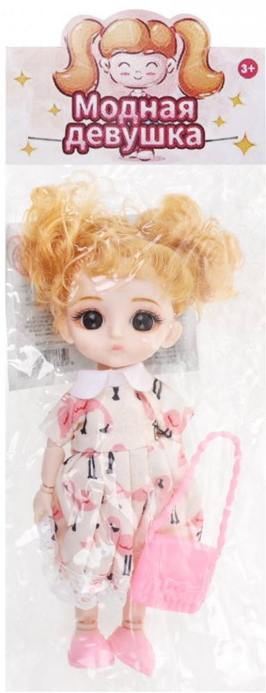 Наша игрушка Кукла с сумочкой «Модница»В данный момент этот товар отсутствует в продаже. Возможно, у нас найдется аналогичный или похожий товар здесь. Девочка любит играть в куклы? Тогда ей точно приглянется игровой набор «Модница»! Прекрасная куколка представлена в стильном платьице с принтом фламинго. У неё очаровательное личико и большие выразительные глазки, шелковистые волосы светло-пшеничного цвета, а также шарнирные руки и ноги (8 точек артикуляции). В комплекте с куклой прилагается сумочка. |