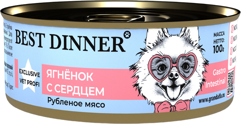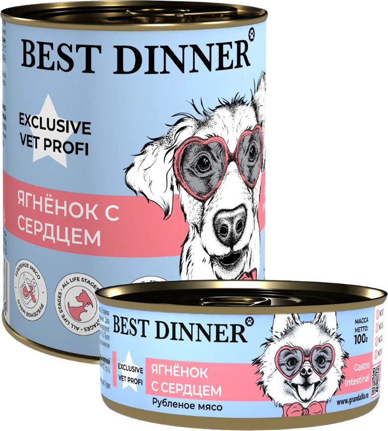 Best Dinner Корм для собак консервированный с ягненком и сердцем-50% +9