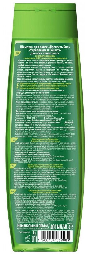Прелесть Bio Шампунь для волос с экстрактом крапивы «Укрепление и защита»