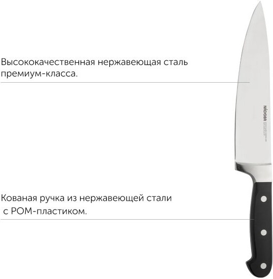 За эти деньги - идеальный шеф, который не сломается, даже если вы будете рубить замороженное мясо. Заводская заточка очень острая, тупится медленно, режет прекрасно