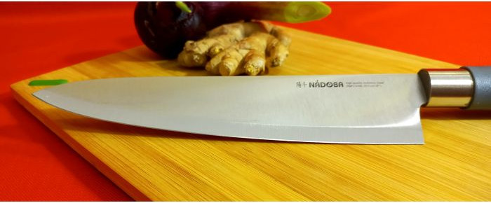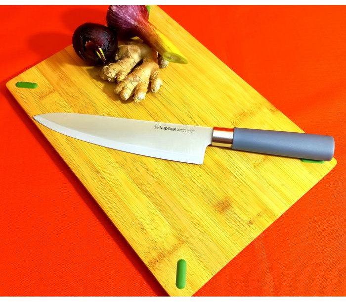 Нож с широким спектром применения. Лезвие имеет форму позволяющюю с легкостью справляться с любым продуктом. Предназначен как для рубки мяса, так и для шинковки любых овощей. Нож в стильном японском дизайне изготовлен из высококачественной нержавеющей стали X30Cr13, благодаря высокому содержанию углерода и специальной термообработке обладает высокой твердостью (52- 54 HRC) и износостойкостью. Лезвие ножа остаётся острым долгое время.