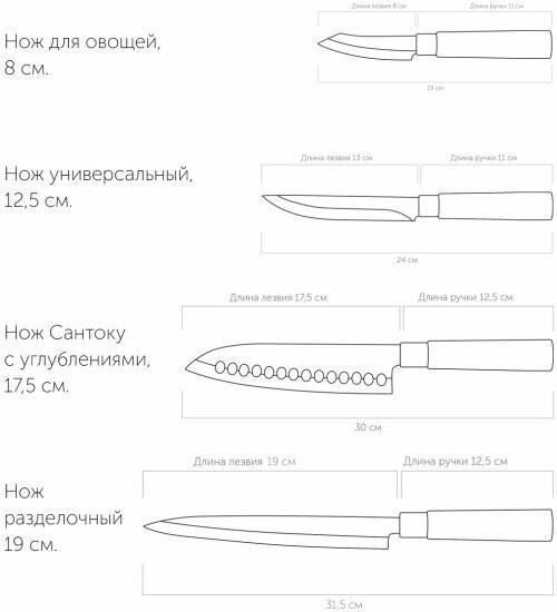 Думала будут чуть тяжелее, они легкие, невесомые. Для самого большого ножа это недостаток