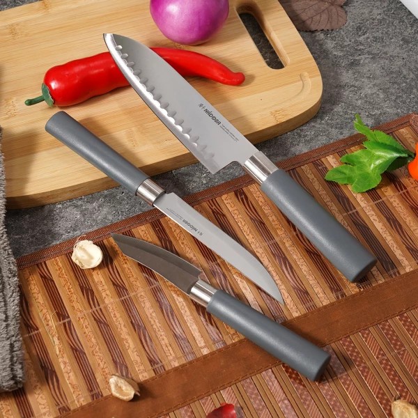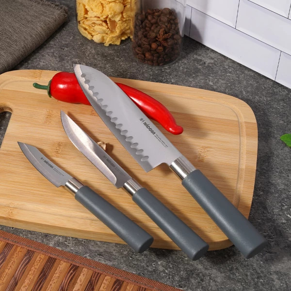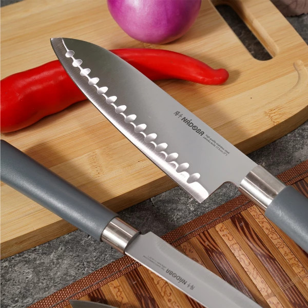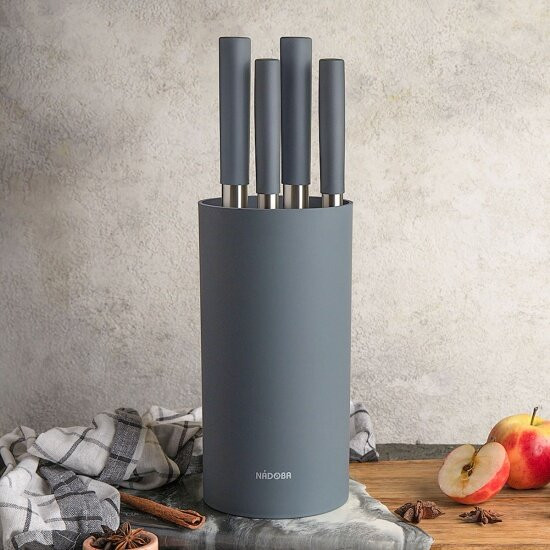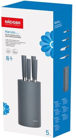 Nadoba Набор ножей с универсальным блоком «Haruto»острые лезвия удобные ручки блок компактный удобное хранение В данный момент этот товар отсутствует в продаже. Возможно, у нас найдется аналогичный или похожий товар здесь. Серия: Haruto Набор ножей серии Haruto обладает привлекательным японским дизайном. В набор входят самые востребованные ножи. Стильный серый цвет ручек ножей и универсального блока для ножей лаконично вписываются в интерьер любой кухни. Ножи изготовлены из высококачественной нержавеющей стали X30Cr13, благодаря высокому содержанию углерода и специальной термообработке обладает высокой твердостью (52- 54 HRC) и износостойкостью. Лезвие ножа остаётся острым долгое время. |
