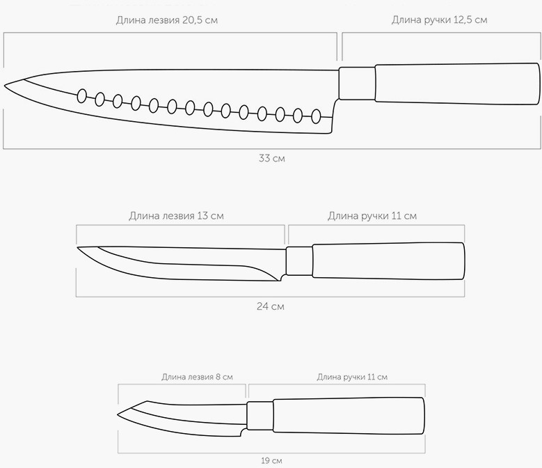 Хороший набор - ножи лёгкие, удобные, острые. Также купила держатель для ножей и отдельно нож для овощей и сантуку Uno, собрала убодный набор. Убодно, что можно штучно разные ножи купить, лезвие разной длины, разных видов и собрать личный набор.