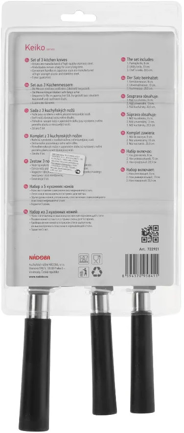 Nadoba Набор ножей «Keiko»острые лёгкие привлекательный дизайн ржавеют В данный момент этот товар отсутствует в продаже. Возможно, у нас найдется аналогичный или похожий товар здесь. Серия: Keiko Ножи в стильном японском дизайне изготовлены из высококачественной нержавеющей стали. Лезвие остаётся острым долгое время. Удобная ручка из высокопрочного пластика и нержавеющей стали. |