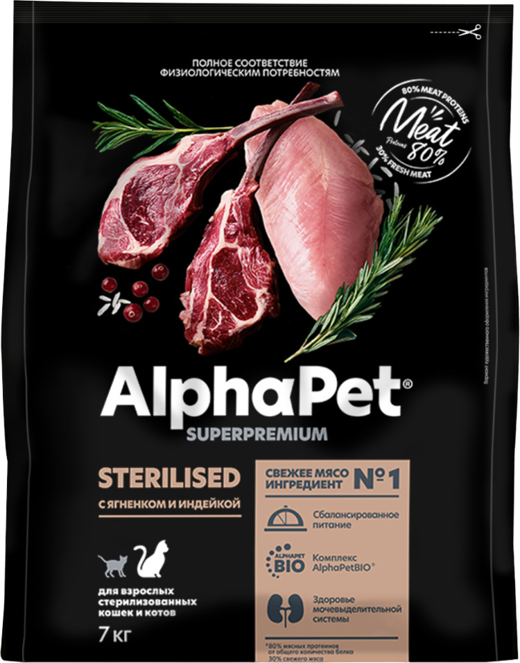 AlphaPet Корм для взрослых стерилизованных кошек и котов с ягнёнком и индейкой