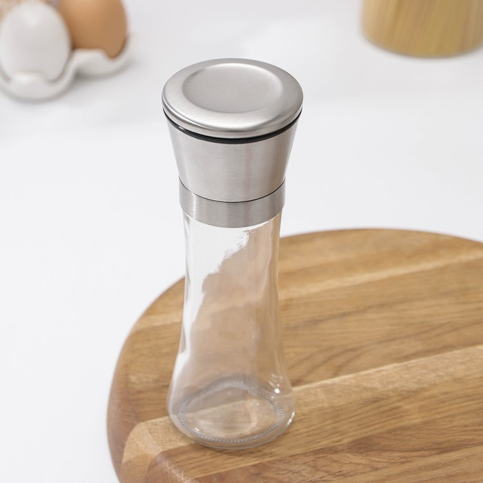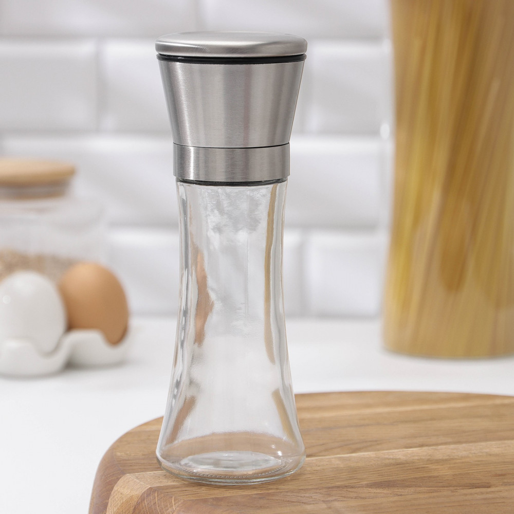 Прозрачный стеклянный корпус - видно сколько специй осталось