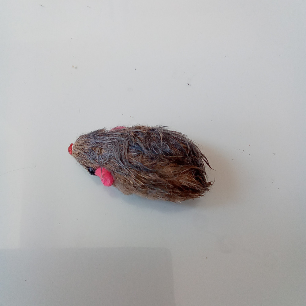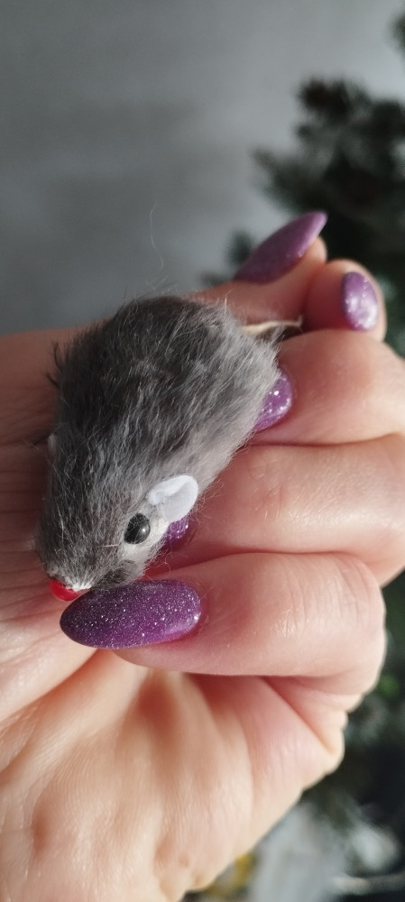 Котёнок доволен! Рычит и ни кому не даёт. Маленькая мышка, смахивает на настоящую) Думала к вечеру шкурка порвётся, пока что нет.