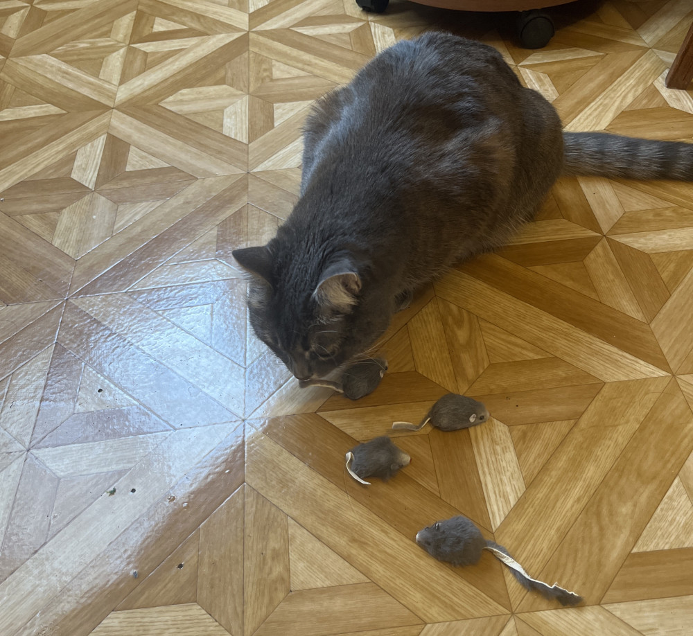 кот их даже не видел. сын отобрал😂. играет. коту придётся заказывать. симпатичные мышки