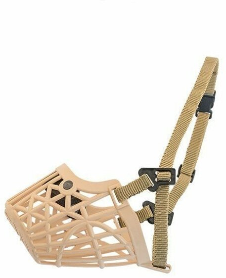 Намордник лёгкий, но не смотря на это имеет надежную продуманную конструкцию с учетом анатомических особенностей собаки. Намордник крепится на затылке защелкиванием надежного замка-фастекса с возможностью регулировки ремешка по длине.