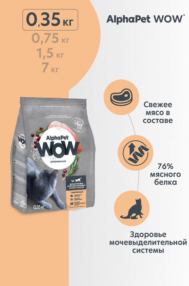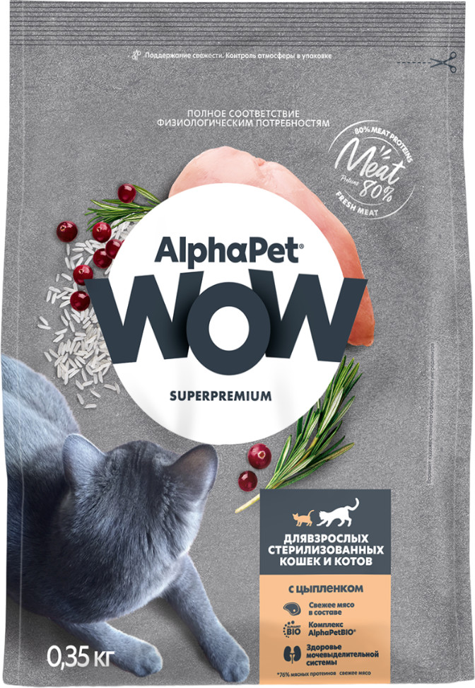 AlphaPet Корм для взрослых стерилизованных кошек и котов с цыплёнком