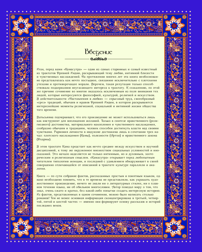 «Камасутра» — это не только самое полное и древнее руководство по сексу в мире, но и прекрасная философская книга о любви, чувственности, зарождении желания и соблазнении.