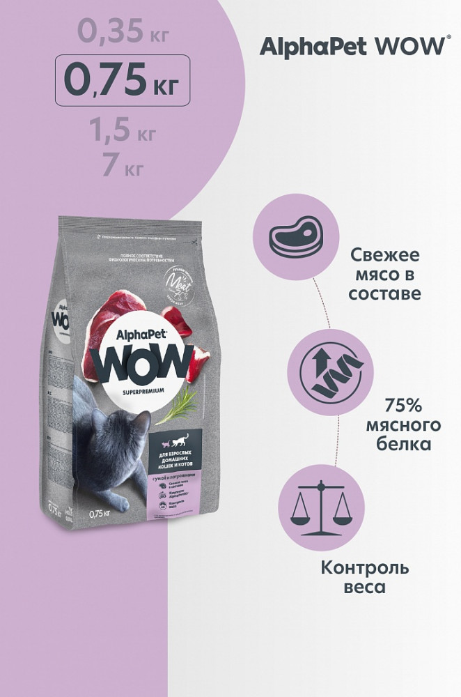 AlphaPet Корм для взрослых домашних кошек и котов с уткой и потрошками