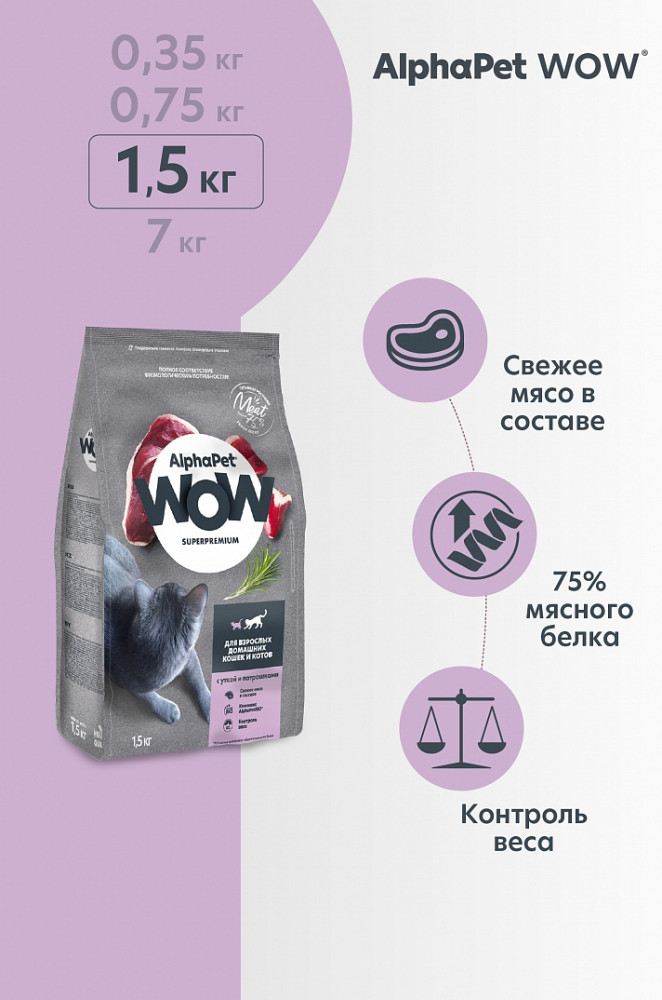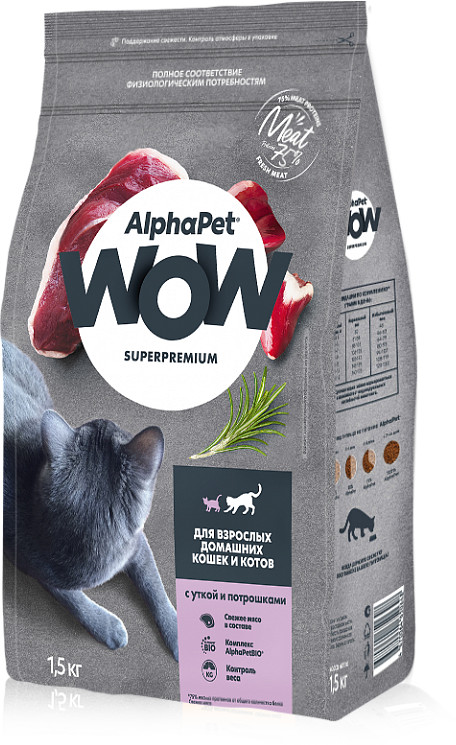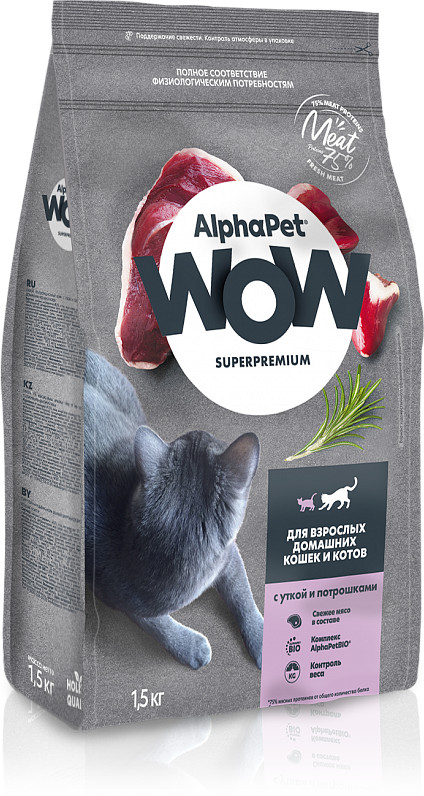 AlphaPet Корм для взрослых домашних кошек и котов с уткой и потрошками