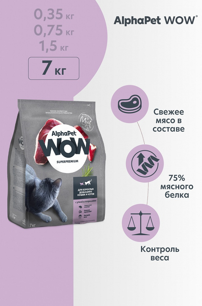 AlphaPet Корм для взрослых домашних кошек и котов с уткой и потрошками