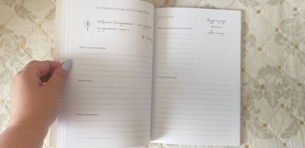 Отличный дневник, работаю с ним неделю. Не жалею что купила, все просто и понятно в нем расписано и разделено. Рассчитан на 90 дней, есть 3 раздела , после каждого подводятся итоги работы, а в конце дневника итоги в целом.
