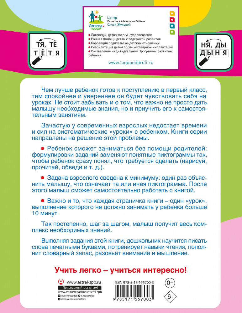 💳 Оплатить за товар можно при получении 🇰🇿 Есть бесплатная доставка по Казахстану от 1 дня 🎁 Копите бонусы с каждой покупки Серия: Экспресс-курс подготовки к школе. 10 минут в день Книги этой серии созданы специально для занятых родителей. Дети вполне смогут заниматься без помощи взрослых: формулировки заданий заменяют понятные пиктограммы так, чтобы ребенок сразу понял, что требуется сделать (нарисуй, прочитай, обведи и т. д.). Такие занятия приучают малыша к самостоятельному выполнению заданий, что является важнейшим навыком для будущего первоклассника. |