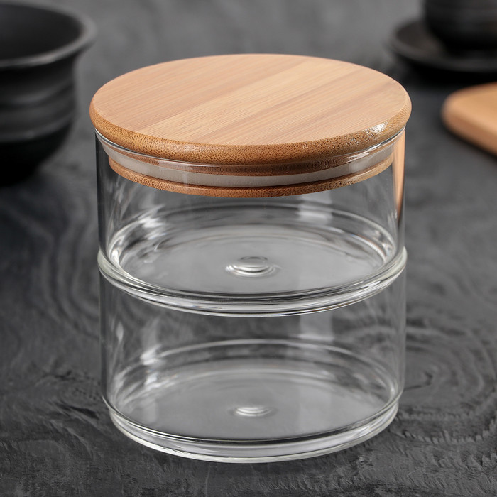Банка для сыпучих продуктов изготовлена из стекла. Имеет плотно закрывающуюся крышку, которая защищает продукты от влаги и посторонних запахов. В ёмкости удобно хранить крупы, специи, макаронные изделия, сахар, муку и бобовые.