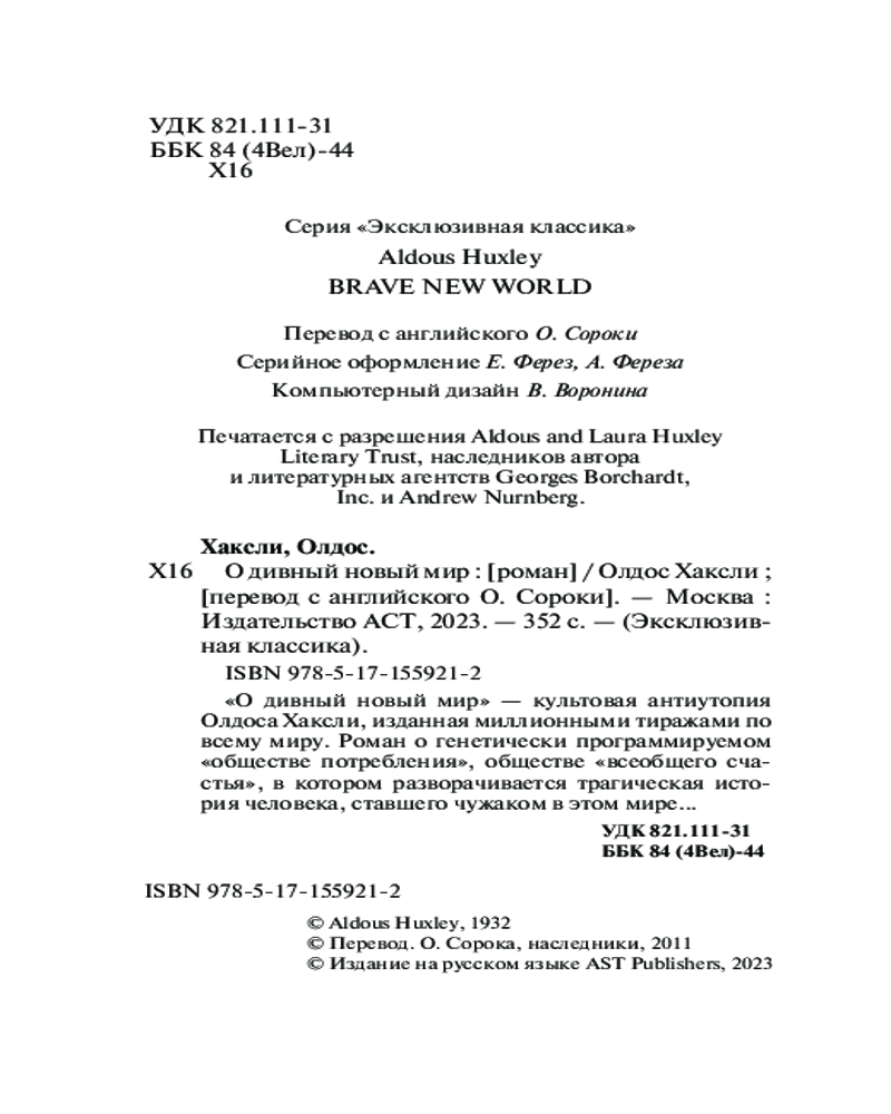 О дивный новый мир+128 качественное издание белые страницы крупный шрифт закладка интересный сюжет