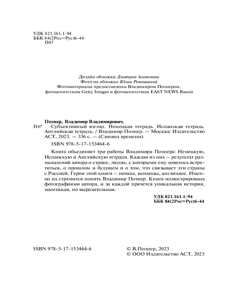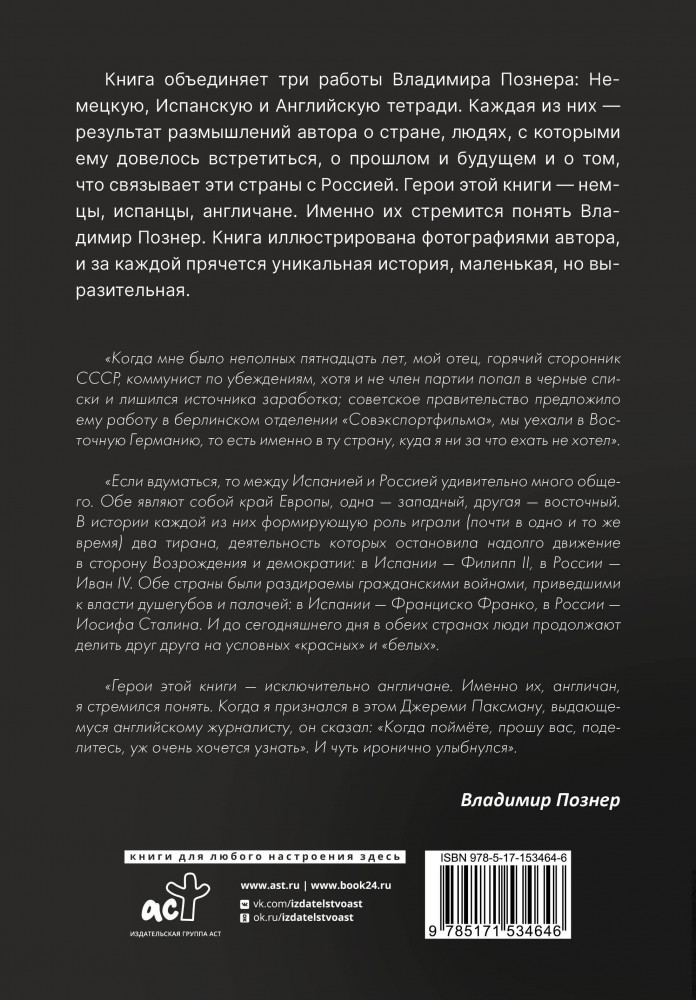 💳 Оплатить за товар можно при получении 🇰🇿 Есть бесплатная доставка по Казахстану от 1 дня 🎁 Копите бонусы с каждой покупки Серия: Символ времени Владимир Владимирович Познер — мэтр российской журналистики. За его плечами годы продуктивной работы на телевидении (телеведущий авторской телевизионной программы-интервью «Познер» на «Первом канале») и несколько книг. Его книги «Немецкая тетрадь», «Английская тетрадь» и «Испанская тетрадь» на протяжении нескольких месяцев держалась во многих российских рейтингах. |