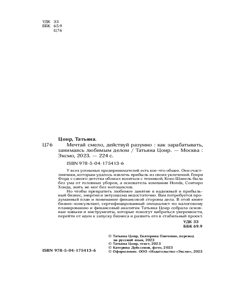 Серия: Говорят эксперты. Практичные книги от специалистов своего дела У всех успешных предпринимателей есть кое-что общее. Они — счастливчики, которым удалось извлечь прибыль из своих увлечений. Генри Форд с самого детства обожал возиться с техникой, Коко Шанель была без ума от головных уборов, а основатель компании Honda, Соитиро Хонда, жить не мог без мотоциклов. |