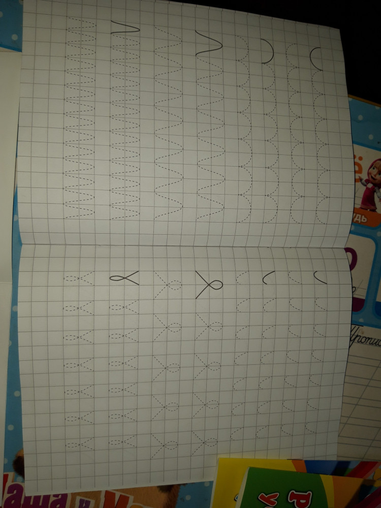 Хорошая тетрадка за небольшие деньги с достаточно плотными страничками. Сначала идут простые элементы (треугольники, зигзаги, кружочки), а потом начинаются элементы букв, что актуально для тех, кто готовится в школу.