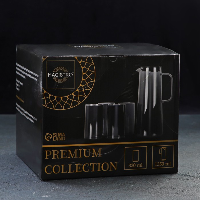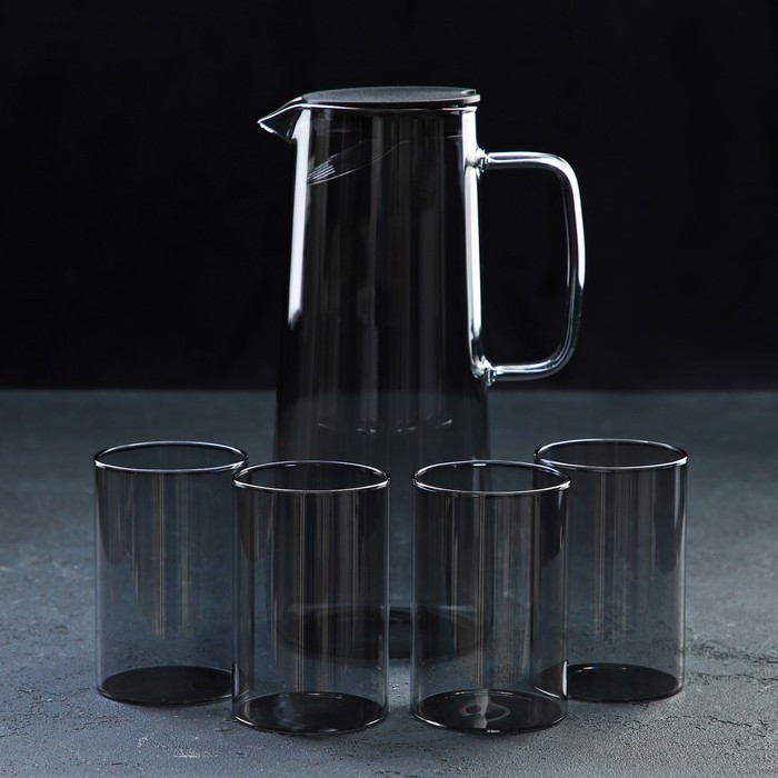 Набор питьевой включает в себя 5 предметов: кувшин и четыре кружки. Предметы изготовлены из качественного прочного стекла с покрытием. Кувшин имеет эргономичную ручку и оснащён удобным носиком. Металлическая крышка с фильтром. Такой набор будет отлично смотреться в праздничной и повседневной сервировке!
