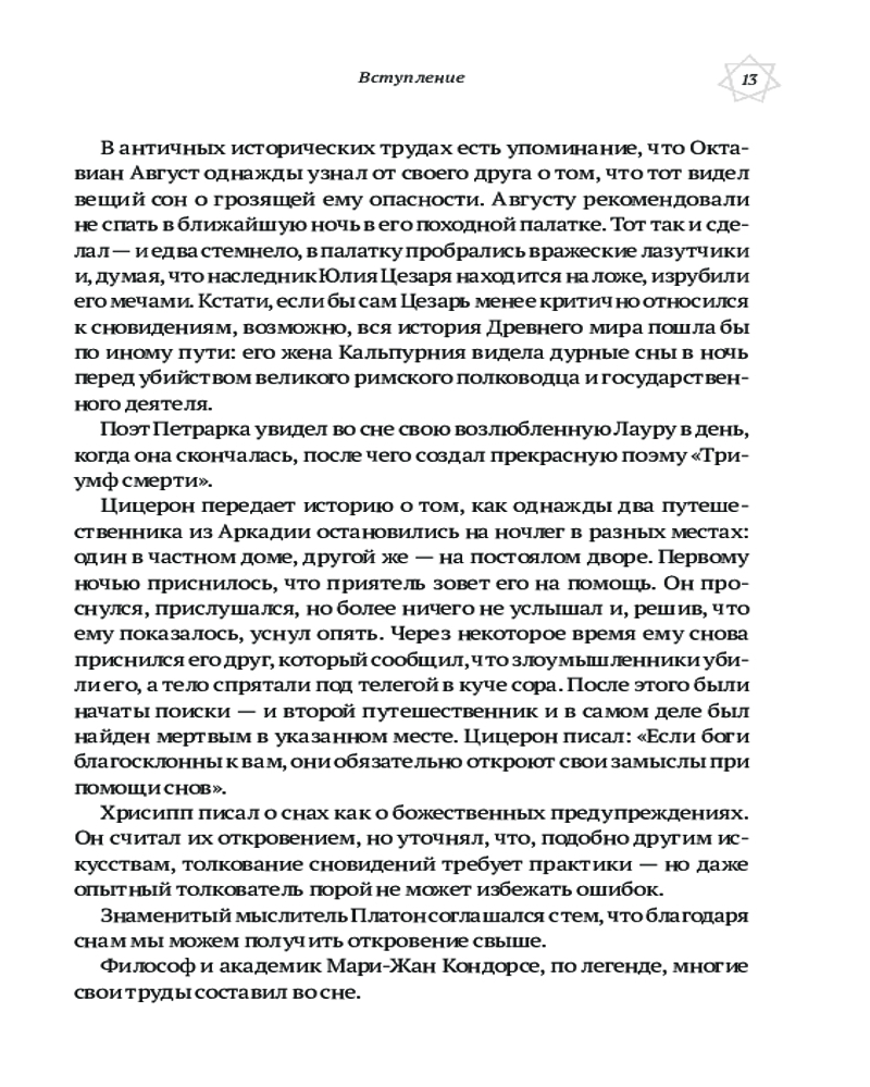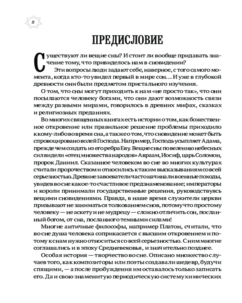 Во многих священных книгах есть истории о том, как божественное откровение или правильное решение проблемы приходило к кому-либо во время сна. Но образы, которые являются нам во снах, часто туманны. С помощью этого сонника вы сможете их истолковать и использовать предзнаменования для улучшения своей жизни во всех аспектах. |