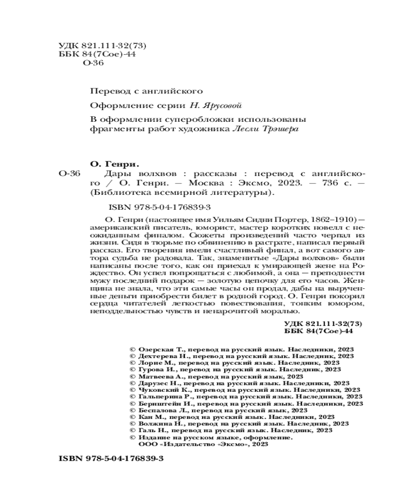 Дары волхвов. РассказыУильям Сидни Портер (О. Генри) В данный момент этот товар отсутствует в продаже. Возможно, у нас найдется аналогичный или похожий товар здесь. Серия: Библиотека Всемирной Литературы О. Генри (настоящее имя Уильям Сидни Портер, 1862–1910) — американский писатель, юморист, мастер коротких новелл с неожиданным финалом. Сюжеты произведений часто черпал из жизни. Сидя в тюрьме по обвинению в растрате, написал первый рассказ. Его творения имели счастливый финал, а вот самого автора судьба не радовала. Так, знаменитые «Дары волхвов» были написаны после того, как он приехал к умирающей жене на Рождество. Он успел попрощаться с любимой, а она — преподнести мужу последний подарок: золотую цепочку для его часов. Женщина не знала, что эти самые часы он продал, дабы на вырученные деньги приобрести билет в родной город. О. Генри покорил сердца читателей легкостью повествования, тонким юмором, неподдельностью чувств и ненарочитой моралью. |
