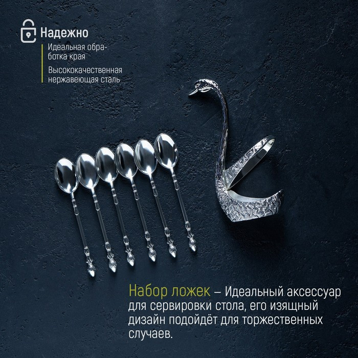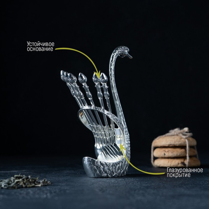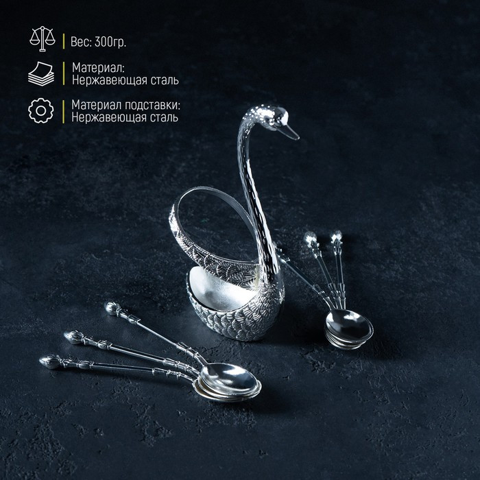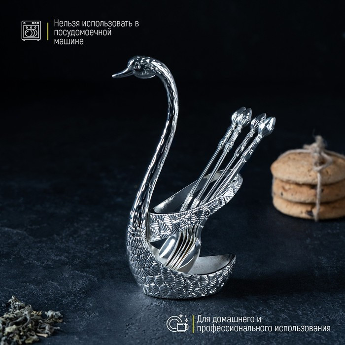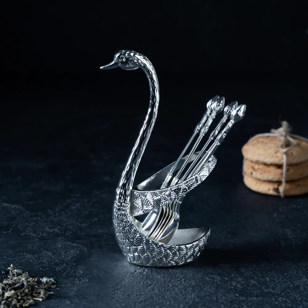 Magistro Набор ложек на подставке «Серебряный лебедь»В данный момент этот товар отсутствует в продаже. Возможно, у нас найдется аналогичный или похожий товар здесь. Серия: Богема Набор ложек на подставке Swan изготовлен из высококачественного металла, состоит из чайных ложек и фигурной подставки в форме лебедя. Идеальная обработка края и высокое качество полировки сохранят блеск на долгое время, а роскошный и изящный дизайн подойдёт для торжественных случаев. Не допускается мытьё в посудомоечной машине. |