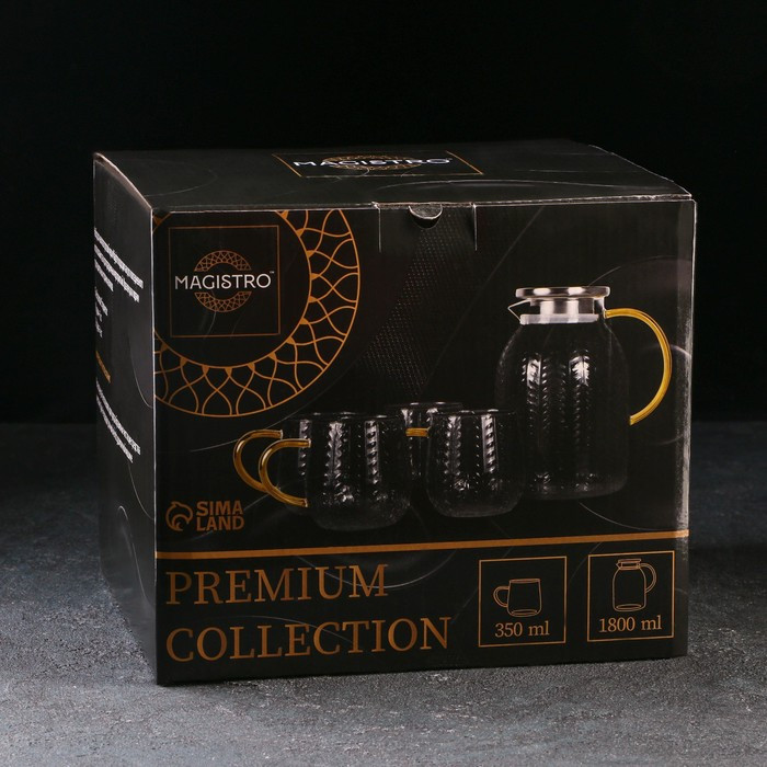 Magistro Набор питьевой «Хрусталик»В данный момент этот товар отсутствует в продаже. Возможно, у нас найдется аналогичный или похожий товар здесь. Набор питьевой включает в себя 5 предметов: кувшин и четыре кружки. Предметы изготовлены из качественного прочного стекла. Кувшин с металлической крышкой, в которой есть фильтр. Изделия имеют эргономичные ручки, кувшин оснащён удобным носиком. Такой набор будет отлично смотреться в праздничной сервировке! |