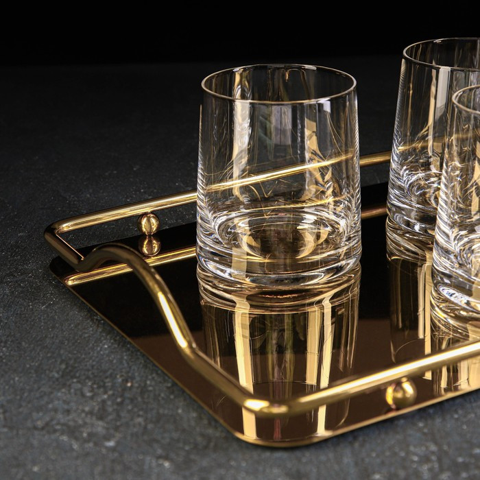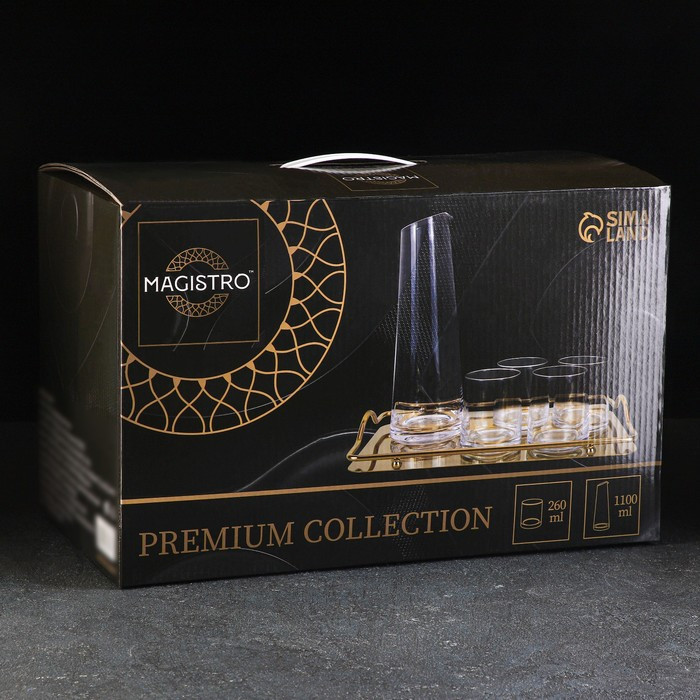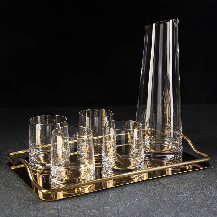 Magistro Набор питьевой с подносом «Гармония»В данный момент этот товар отсутствует в продаже. Возможно, у нас найдется аналогичный или похожий товар здесь. Набор питьевой включает в себя 6 предметов: кувшин, четыре кружки и поднос. Кувшин и стаканы изготовлены из качественного прочного стекла. Кувшин оснащён удобным носиком. Поднос выполнен из качественной нержавеющей стали и имеет бортики. Такой набор будет отлично смотреться в повседневной и праздничной сервировке! |