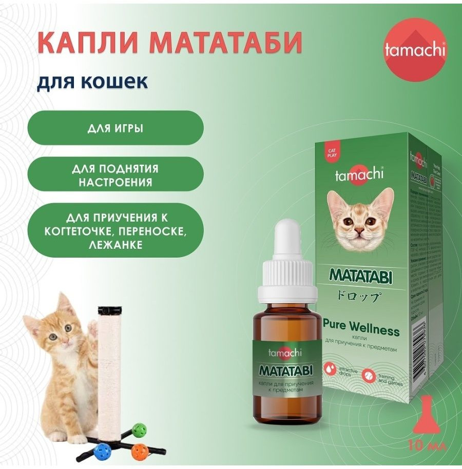 Tamachi Pet Company Капли для приучения к предметам «Мататаби»В данный момент этот товар отсутствует в продаже. Возможно, у нас найдется аналогичный или похожий товар здесь. Капли Мататаби — универсальное средство для продолжительных игр и поднятия настроения кошки. Не вызывает перевозбуждения нервной системы и повышенной агрессивности. Подходит для приучения к когтеточкам, лежанкам и переноскам. Снимает стресс, повышает психоэмоциональный и физический тонус питомца. Так же способствует решению проблемы ожирения кошек, стимулируя их к активным играм. |