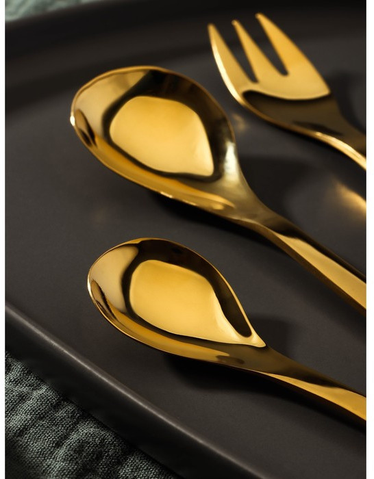 Отличный набор приборов в подарочной коробке, можно и на подарок, удобные формы, нож режет прилично, взял как комплект на работу, жаль у него вместо коробки не чехол для хранения, было бы еще лучше