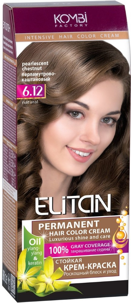 Элитан Крем-краска для волос, оттенок 6.12 Перламутрово-каштановый