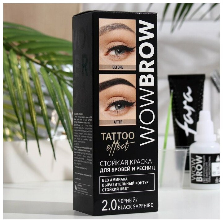 Fara Крем-краска для бровей и ресниц с эффектом татуажа, оттенок 2.0 чёрный