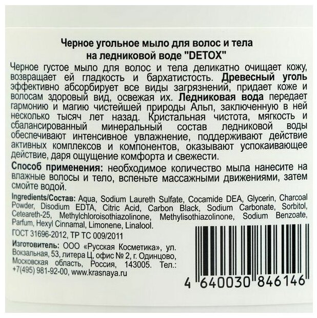 💳 Оплатить за товар можно при получении 🇰🇿 Есть бесплатная доставка по Казахстану от 1 дня 🎁 Копите бонусы с каждой покупки Детокс мыло с черным углем для волос и тела Особая Серия Detox призвано запустить комплексную перезагрузку для волос и тела! Детокс эффект мыла основан на действии очищающего угля, естественного представителя природных адсорбентов, а также очищенной ледниковой воды: |