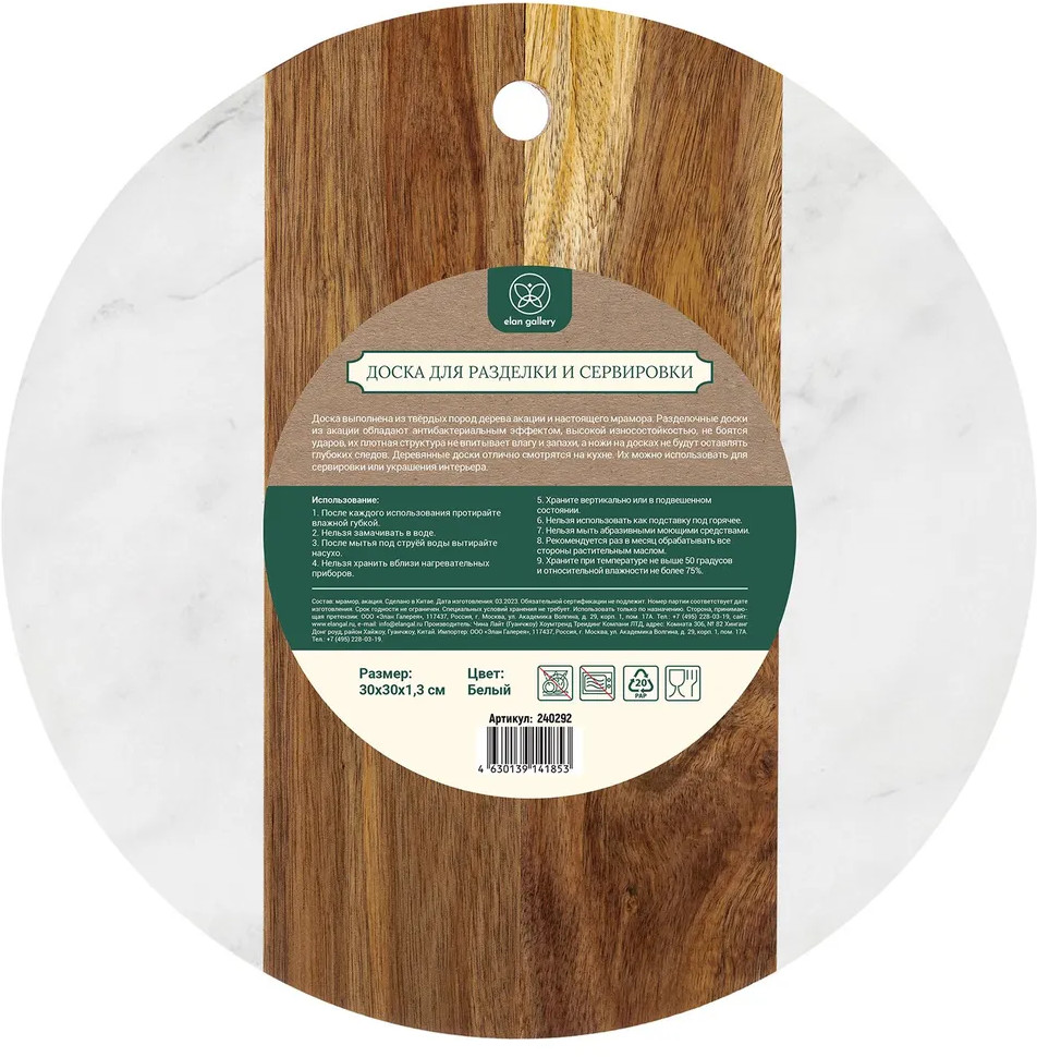 Стильное мраморное блюдо сможет стать настоящим украшением дома. Хранить вертикально или в подвешенном состоянии, вдали от нагревательных приборов при нормальном уровне влажности. Нельзя замачивать или мыть в посудомоечной машине. После мытья протирайте насухо. Доска с деревянными и каменными элементами станет удобным дополнением сервировки и кухни или приятным подарком для ваших родных и близких!