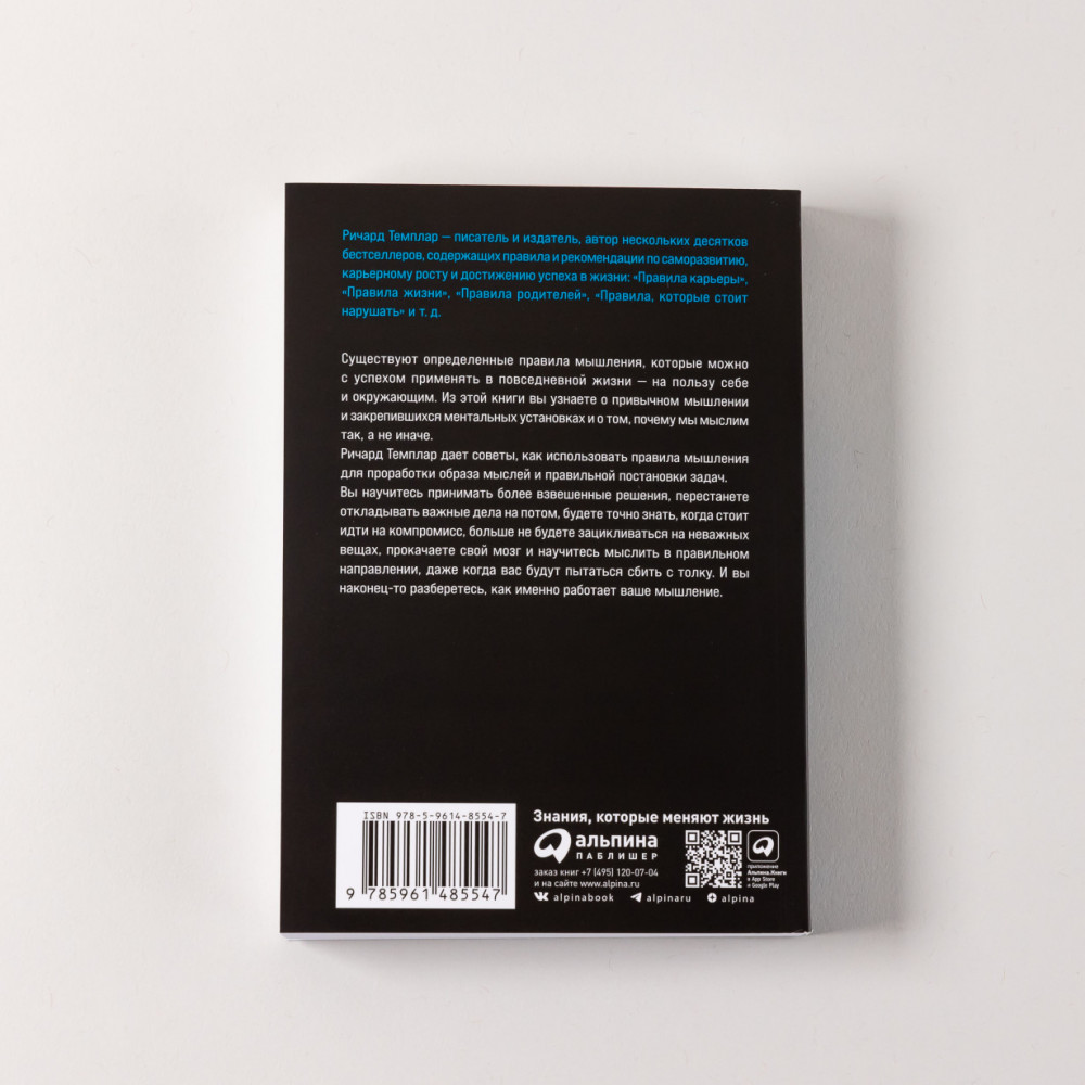 💳 Оплатить за товар можно при получении 🇰🇿 Есть бесплатная доставка по Казахстану от 1 дня 🎁 Копите бонусы с каждой покупки Серия: Правила Темплара Мы завидуем здравомыслящим людям, которые умеют без колебаний найти выход из трудной ситуации, восхищаемся теми, кто умеет понять точку зрения других, кого слушают и к кому обращаются за советом. Но врожденный ли это дар, или мышлению можно научиться? Наблюдая за привычками и практиками успешных и счастливых людей, Ричард Темплар составил 100 универсальных правил мышления, которые можно применять в повседневной жизни на пользу себе и окружающим. Автор рассказывает, какие ментальные ошибки день за днем совершают люди, и дает советы желающим избежать этих ошибок и понять, как работает наше мышление. Из этой книги вы узнаете, как сохранять самообладание и отстаивать свое мнение, не додумывать за других и избегать интеллектуальных ловушек, научитесь принимать более взвешенные решения, будете точно знать, когда стоит идти на компромисс, и научитесь ясно мыслить, даже когда вас будут пытаться сбить с толку. |