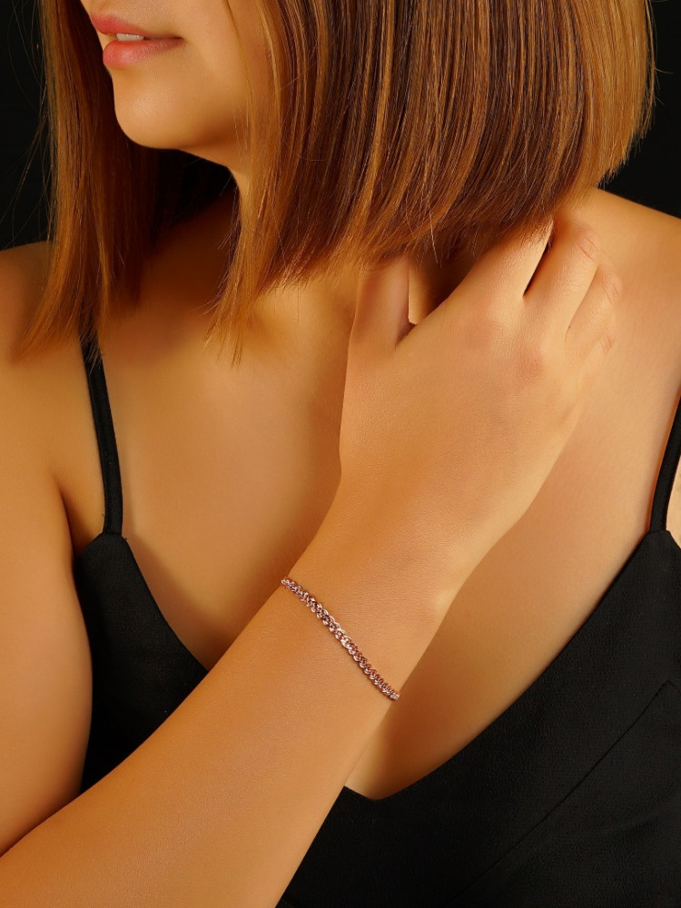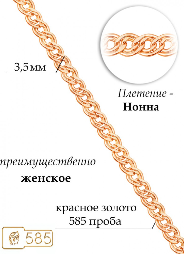 Элегантный золотой браслет, вид плетения «нонна», прочная и гибкая модель не склонна к надломам, прекрасно дополнит образ обладательницы. Изделие блестит на свету, при желании можно дополнить подвеской. Выполнено изделие из красного золота 585 пробы.