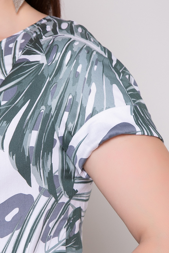 По фото и стоимости думала, что будет домашнее трикотажное платье.Искала на других сайтах, чтобы прочитать отзывы, но этого платья нет нигде. Приятно удивило качество ткани - шелковистый хлопок. На 46-48 (верх) взяла 48 р., село платье замечательно, но в рукавах узковато, несмотря на нежирные руки. Довольно широкий низ, но мне это нравится. Ремешка нет, хотелось бы пояс из этого материала. В +36 нежарко. Актуальный принт этого сезона.
