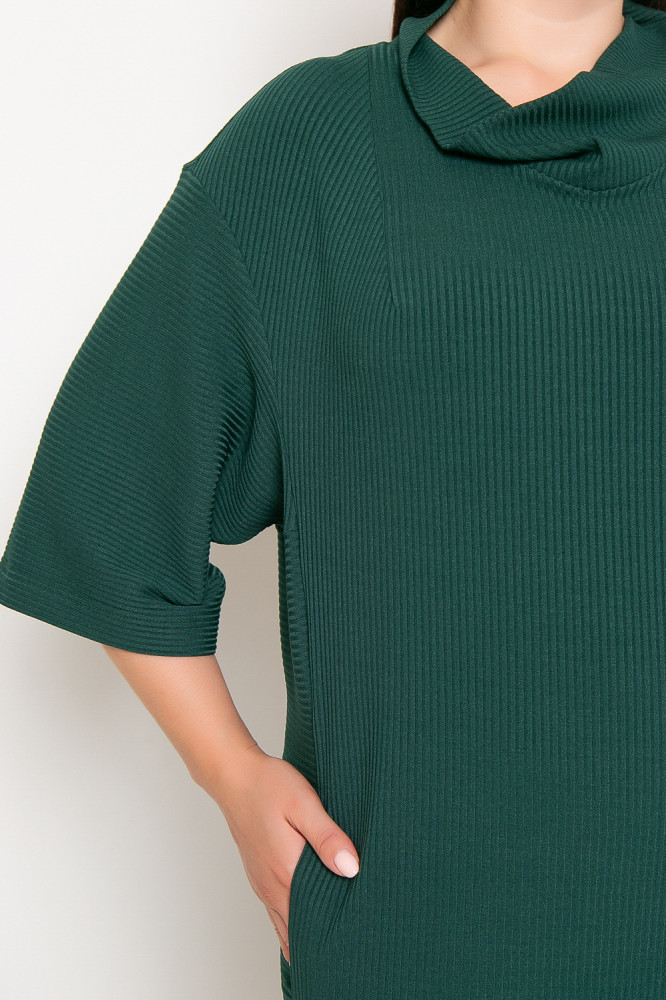 В целом неплохое платье. Легкий трикотаж в рубчик. Идет в размер. Для высоких.
