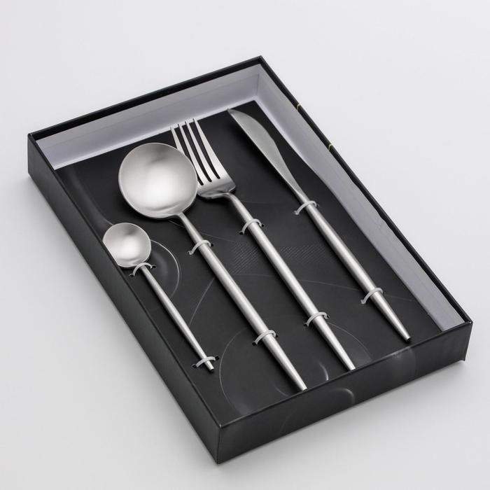 Набор столовых приборов «Фолк» выполнен из высококачественной нержавеющей стали. Набор обладает не только оригинальным дизайном, но и практичностью, так как изделия из качественной нержавеющей стали имеют высокую прочность, устойчивость к коррозии, кроме того, нержавеющая сталь экологична, она не меняет вкусовые свойства еды, потому как не вступает в реакцию с её компонентами.