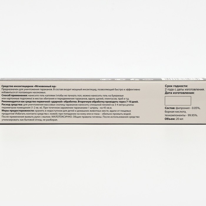 💳 Оплатить за товар можно при получении 🇰🇿 Есть бесплатная доставка по Казахстану от 1 дня 🎁 Копите бонусы с каждой покупки Средство прозволяет быстро и эффективно избавиться от тараканов. В состав приманки входит сверхсильный инсектицид. |