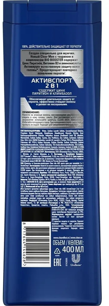 Clear vita ABE Шампунь мужской с ментолом «Активспорт»