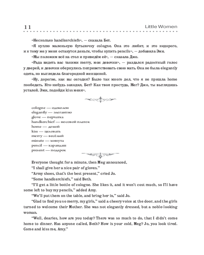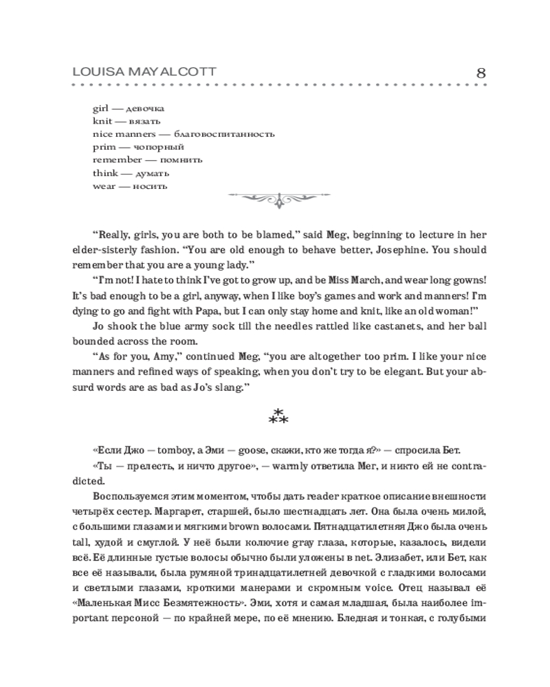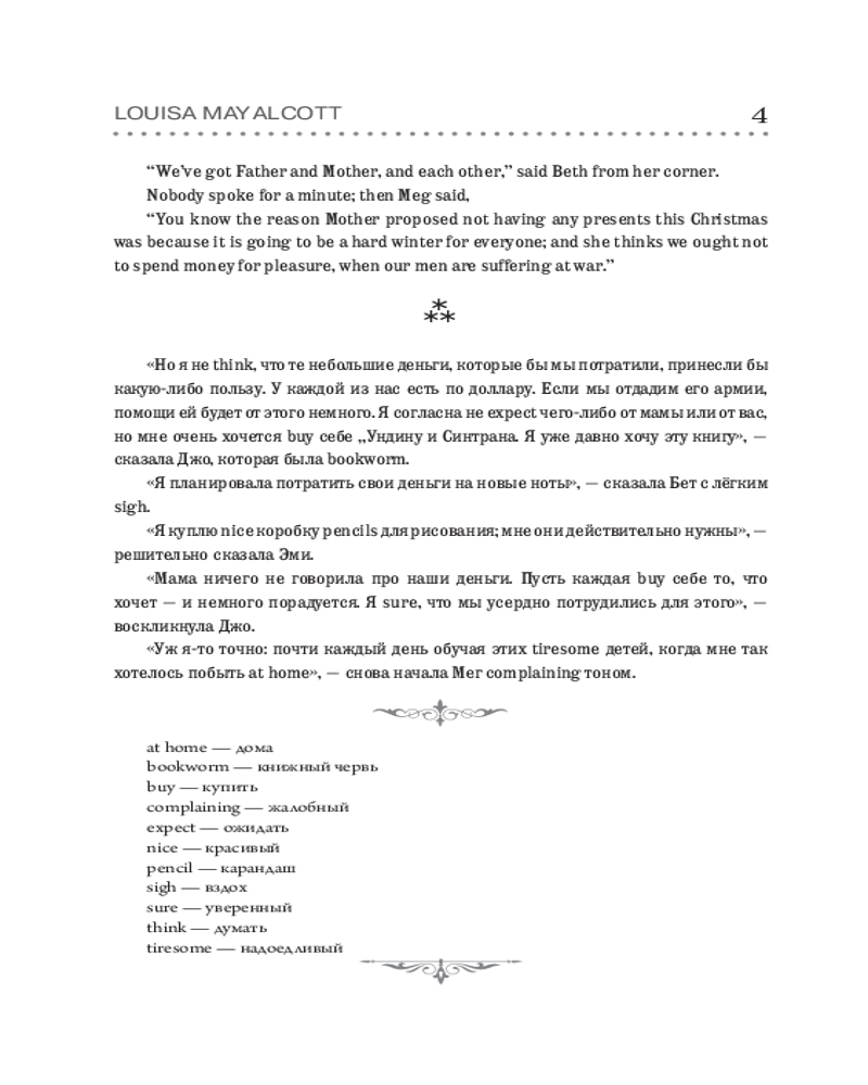 💳 Оплатить за товар можно при получении 🇰🇿 Есть бесплатная доставка по Казахстану от 1 дня 🎁 Копите бонусы с каждой покупки Серия: Английский язык: метод интегрированного чтения Данное издание предлагает особую методику интегрированного чтения. В книгу вошло знаменитое на весь мир произведение Луизы Мэй Олкотт «Маленькие женщины», которое дается не только на английском языке, но и с переводом на русский с интегрированием в него английских слов. Понять их значение не составит труда благодаря интуитивному восприятию информации, а проверить себя вы сможете благодаря словарю, который дается в книге. Закрепить свои знания и потренироваться можно, прочитав отрывок на английском языке. |