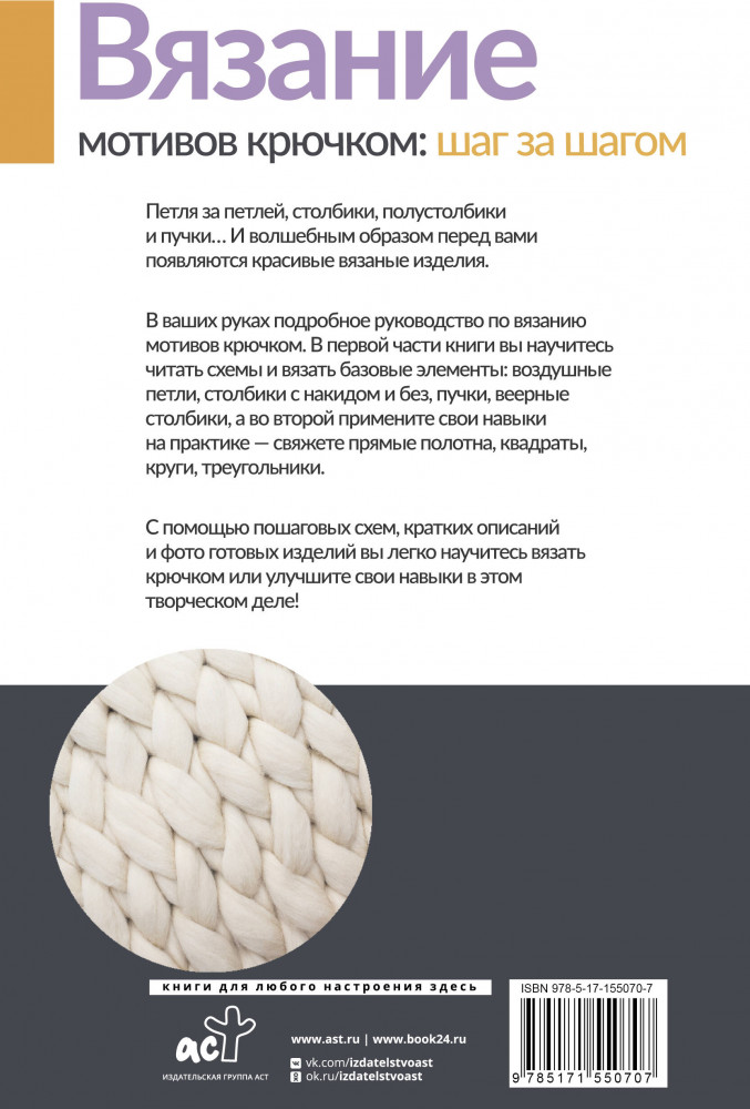 💳 Оплатить за товар можно при получении 🇰🇿 Есть бесплатная доставка по Казахстану от 1 дня 🎁 Копите бонусы с каждой покупки Серия: Рукоделие от А до Я. Лучшее Татьяна Михайлова — автор более чем 20 книг по вязанию, на протяжении многих лет ей доверяют тысячи рукодельниц. С помощью этой книги вы раскроете секреты вязания и овладеете крючком в совершенстве. |