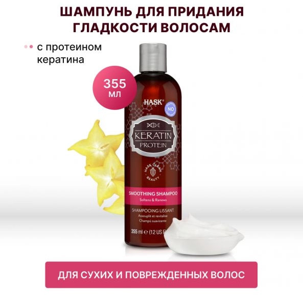 Hask Шампунь для волос разглаживающийВ данный момент этот товар отсутствует в продаже. Возможно, у нас найдется аналогичный или похожий товар здесь. Серия: Keratin & Protein Шампунь для придания гладкости идеально подходит для поврежденных и самых непослушных волос. Насыщенный питательными элементами в сочетании с протеином кератина, шампунь мягко очищает, глубоко питает и восстанавливает волосы, уменьшая ломкость и придавая им естественное сияние и шелковистость. |