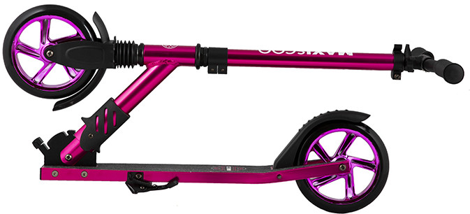 Надежный и стильный самокат с колесами 180 мм можно использовать как для катания, так и для дальних поездок, а простая система складывания одним движением, позволит легко сложить самокат при входе в транспорт. Передний амортизатор обеспечит более комфортный проезд неровностей, а широкие грипсы обеспечат полный контроль над самокатом.