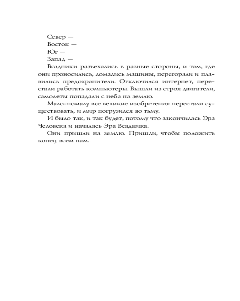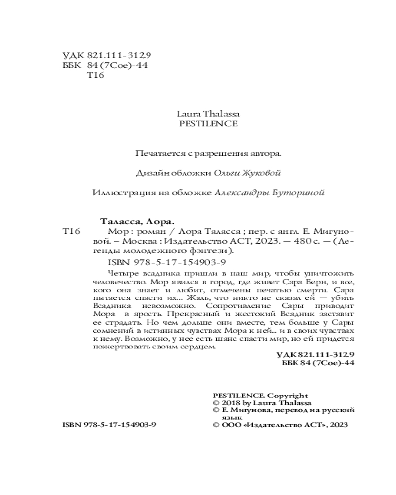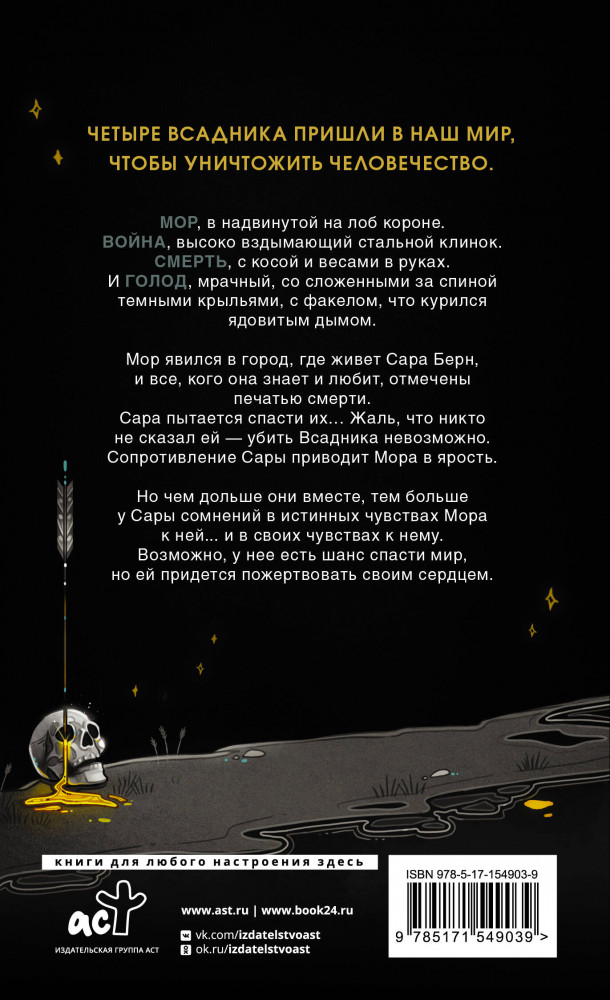 МорВ данный момент этот товар отсутствует в продаже. Возможно, у нас найдется аналогичный или похожий товар здесь. Серия: Легенды молодежного фэнтези Четыре всадника пришли в наш мир, чтобы уничтожить человечество. Мор явился в город, где живет Сара Берн, и все, кого она знает и любит, отмечены печатью смерти. Сара пытается спасти их... Жаль, что никто не сказал ей — убить Всадника невозможно. Сопротивление Сары приводит Мора в ярость. Прекрасный и жестокий Всадник заставит ее страдать. Но чем дольше они вместе, тем больше у Сары сомнений в истинных чувствах Мора к ней... и в своих чувствах к нему. Возможно, у нее есть шанс спасти мир, но ей придется пожертвовать своим сердцем. |